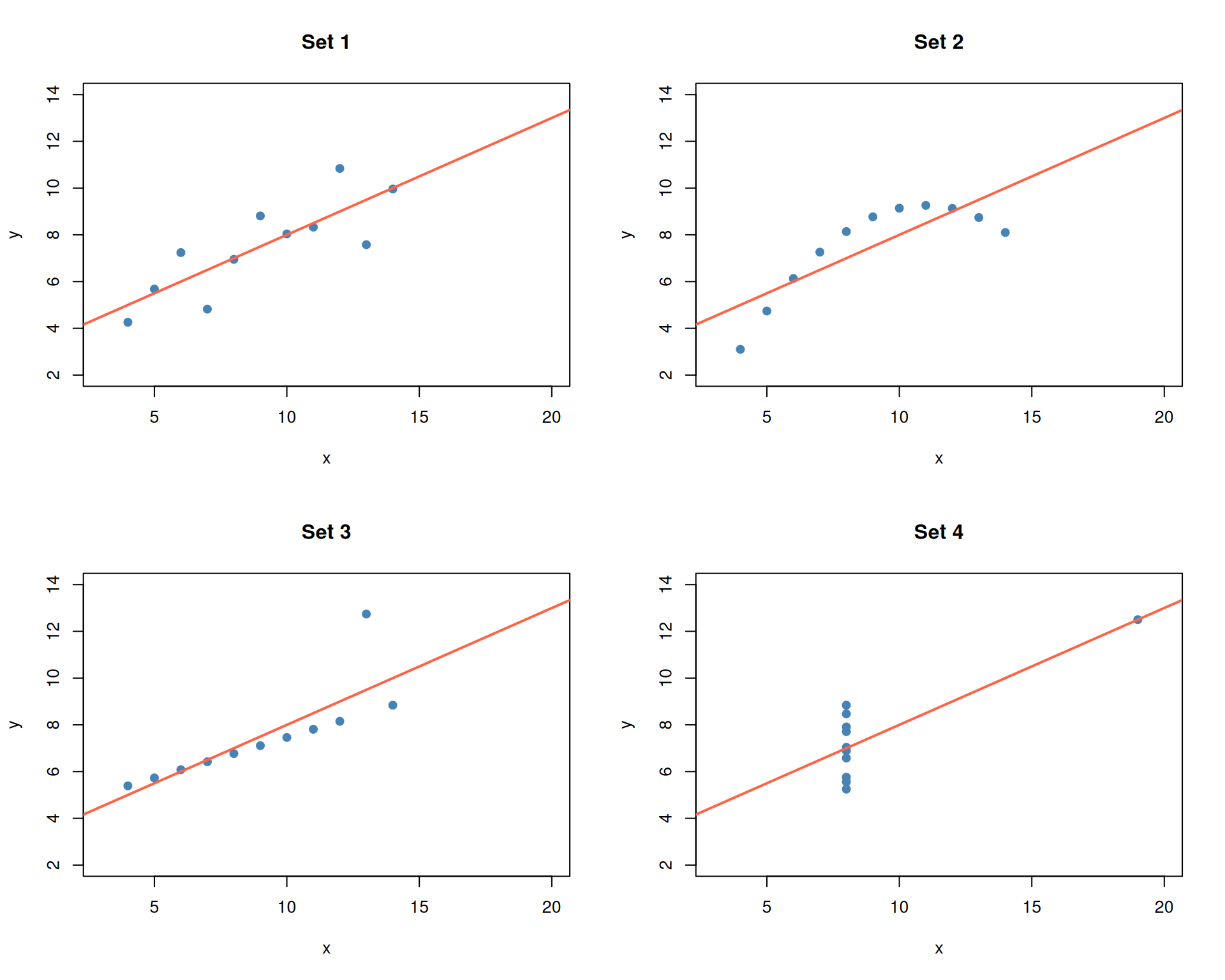 This is why exploratory data analysis — and plotting in particular — is an essential first step in any analysis. As Anscombe himself wrote: