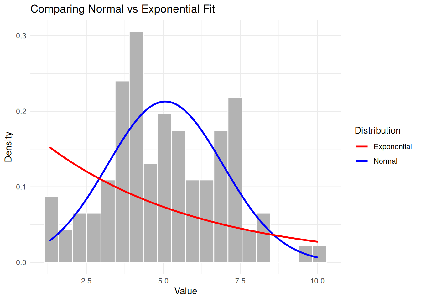 A large p-value (> 0.05) suggests we cannot reject the hypothesis that the data comes from the fitted distribution.