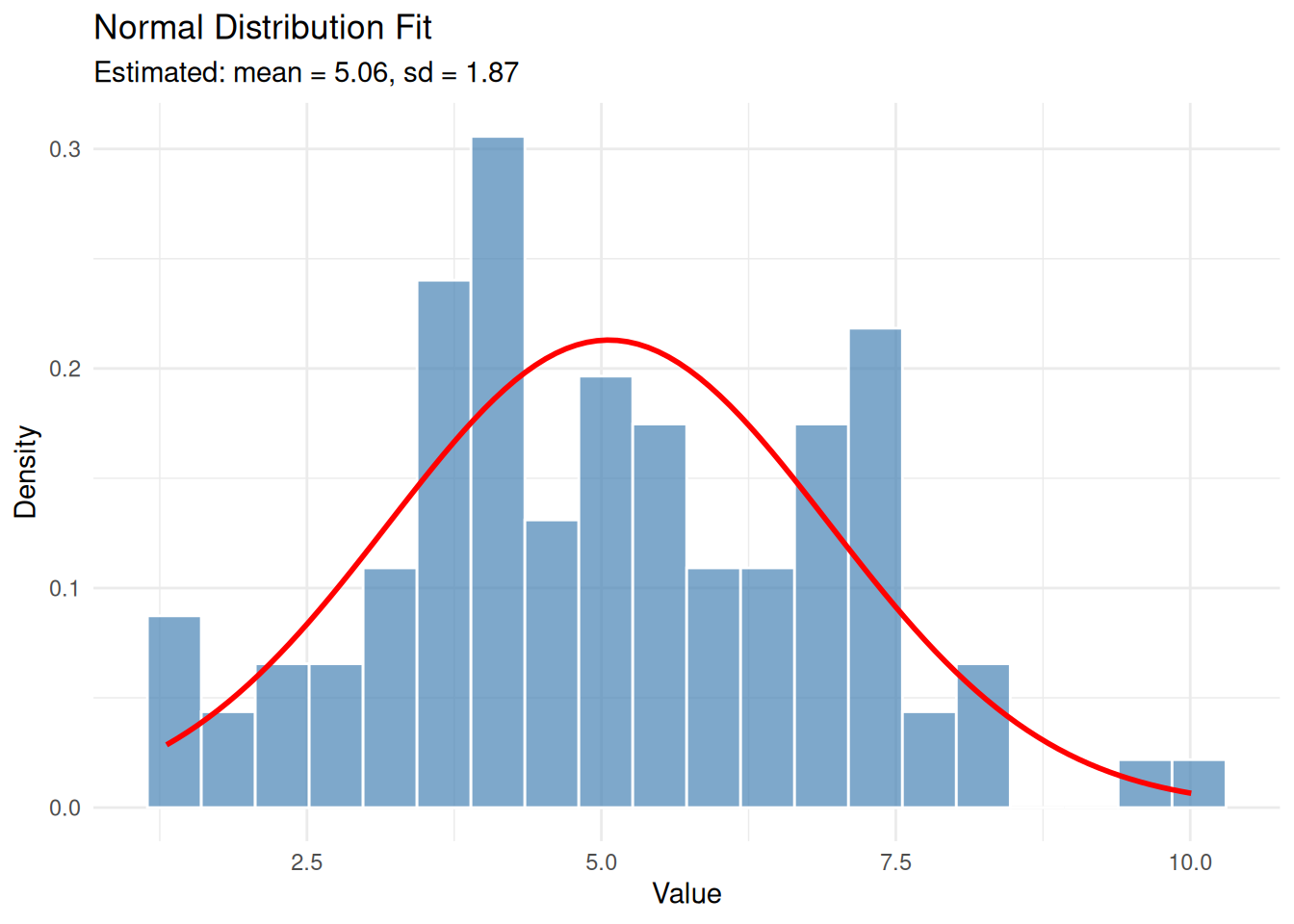 x <- rnorm(n, mean = true_mean, sd = true_sd)