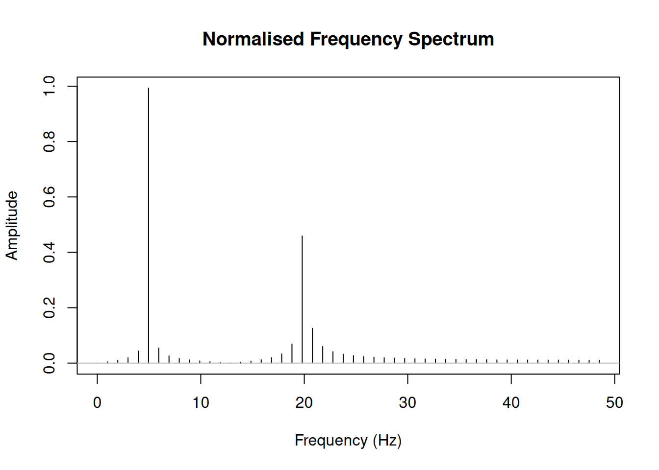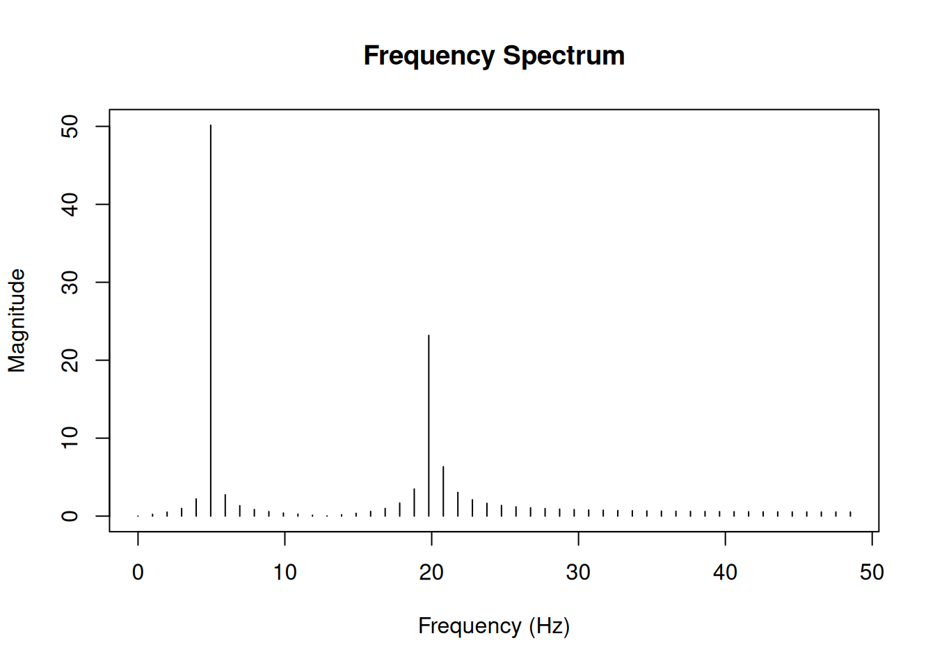 # Create a signal with two frequencies: 5 Hz and 20 Hz